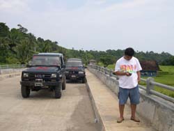 In Pangalengan, we had to winch the truck fully loaded with woods because the truck was stuck in the middle of the road.